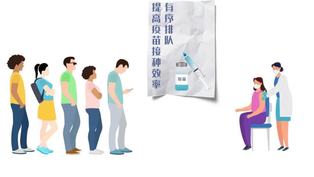 預(yù)約疫苗不易,請準時到達醫(yī)院接種,排隊等候不用急,井然有序才能提高效率。